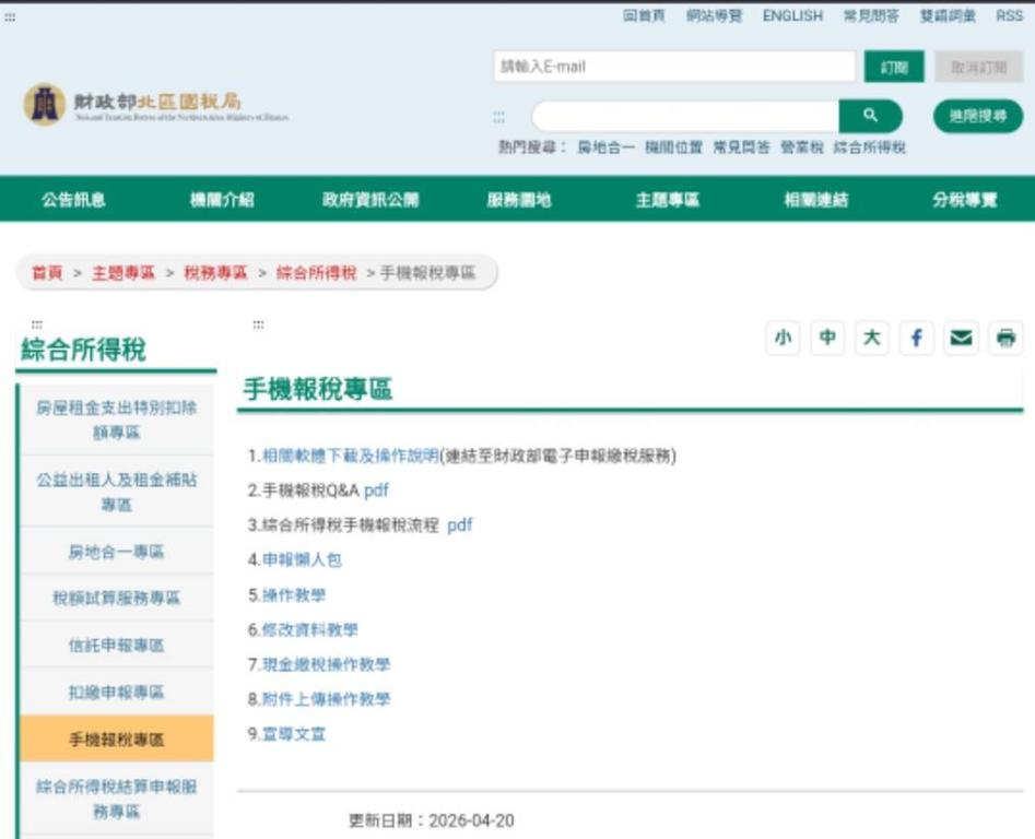 ▲手機報稅相關資訊可至財政部北區國稅局網站之「綜合所得稅手機報稅專區」查詢(圖/竹北國稅局提供)