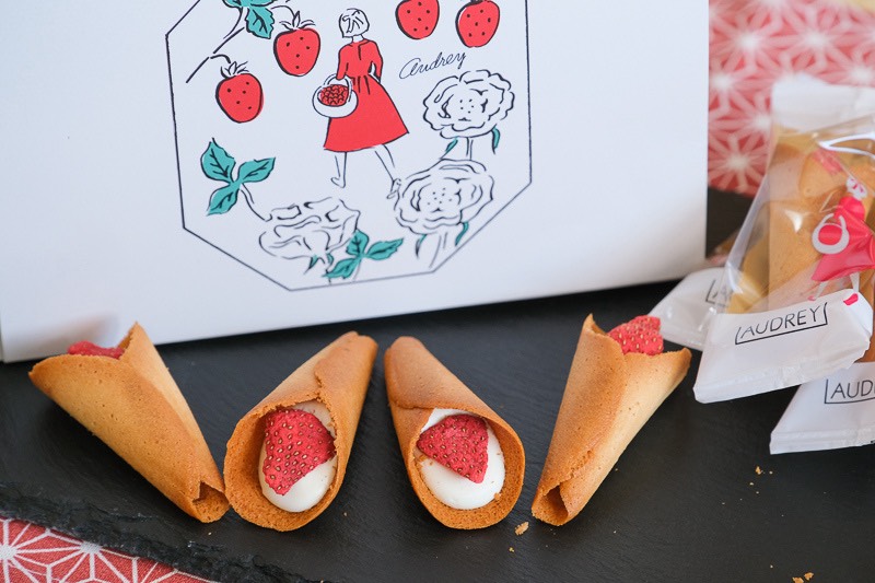 ▲「AUDREY草莓花束餅乾」在甜筒形狀的餅皮裡,加入草莓乾及奶油,夢幻甜點一定要吃。(圖/新竹SOGO提供)