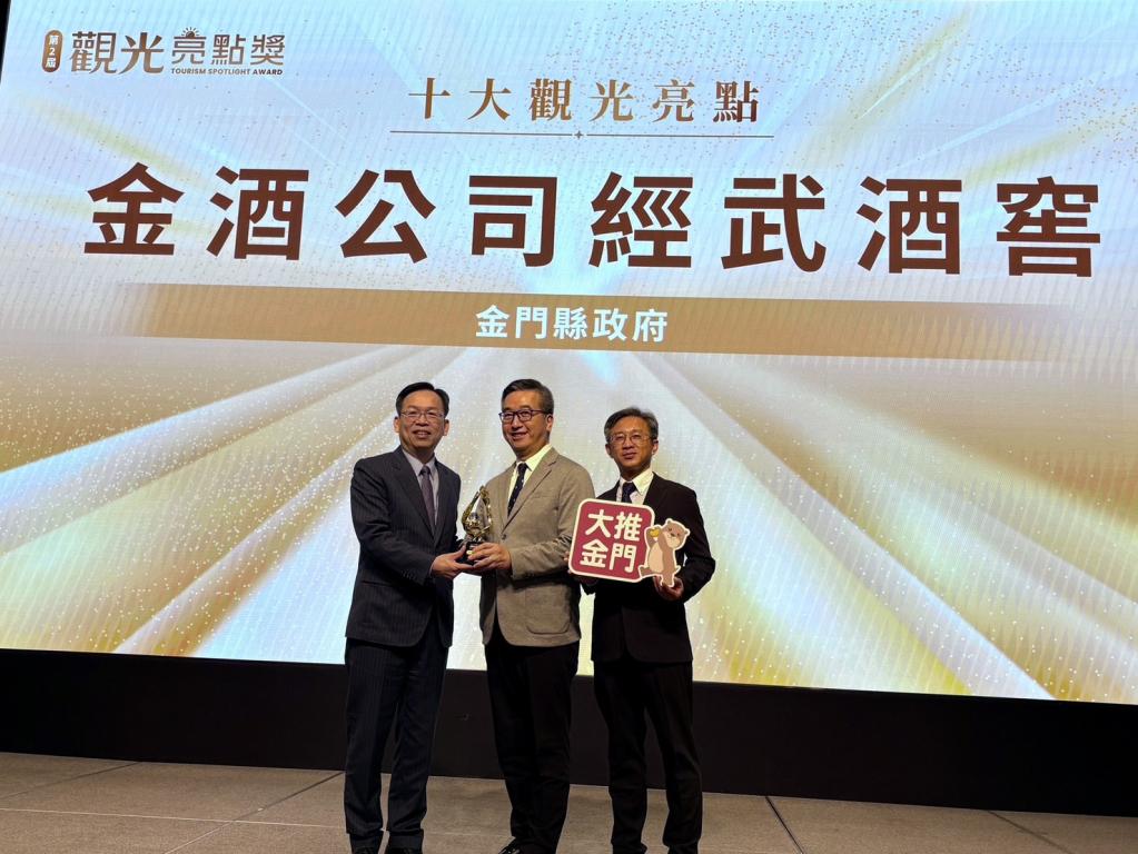 【勁報記者于郁金/金門報導】交通部觀光署攜手全臺52個中央部會、地方政府及民間公益法人,共同舉辦第2屆「觀光亮點獎」,歷經113萬人次全民票選及多元領域專家評審,選出「十大觀光亮點獎」、「最佳國際推薦獎」、「最佳國旅創新獎」及「最佳人氣獎」等獎項,並於近11日在臺北隆重舉行頒獎典禮;金門觀光再創佳績,金酒公司經武酒窖奪「十大亮點獎」殊榮,金城鎮後浦十六藝文特區、烈嶼鄉習山湖公園、金湖鎮陳景蘭洋樓3大景點榮獲「最佳人氣獎」。