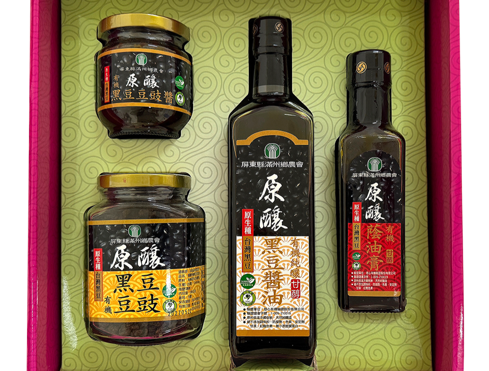 黑豆產品亦相當多元,從黑豆醬油、黑豆蔭油膏、有機黑豆豆豉醬、黑豆醋等呈現南國風情的調味料,到採用瑯嶠有機米酒、有機黑豆製作的黑豆酒,甚至跨界研發黑豆花青素面膜,從餐桌到保養品,象徵農業升級無限可能。