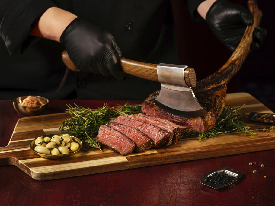 ▲煙波新竹莫內饗宴自助餐廳重磅升級,冷泉酒焰炙60盎司巧克力和牛戰斧霸氣登場。(圖/煙波國際觀光集團提供)