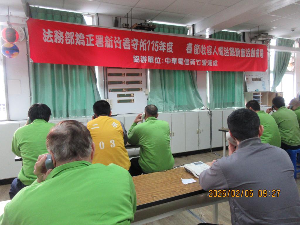 2月6日首先舉行電話懇親活動,由中華電信新竹營運處協助提供10具電話設備,讓153名收容人得以透過電話向親屬問候近況、道賀新年。活動現場秩序井然,電話另一端熟悉的聲音,成為收容人最真切的情感支撐,不少人藉由短短通話傳達思念與歉意,也為未來重新出發注入動力。