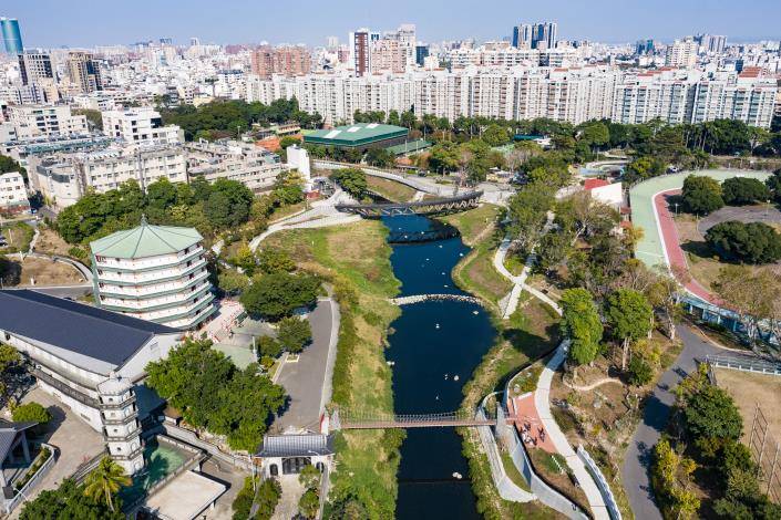 黃偉哲市長指出,竹溪1期工程重點在於「打開河岸」,將原本封閉水道轉化為親水綠廊,是適合全家大小輕鬆散步路線;園區內最吸睛地標莫過於猶如一抹弦月橫臥溪上「月見橋」;橋身優雅弧線在夜間燈光投射下,倒映於清澈溪面,如詩如畫;而連結體育園區「鳳凰橋」則象徵府城鳳凰展翅,2座橋樑串聯起竹溪兩岸綠意;此外,沿岸設有讓孩子放電特色遊戲場,及透過自然工法淨化水質生態湖,水面下隨處可見魚群優游及白鷺鷥與翠鳥駐足,是市區難得生態觀察教室,非常適合祖孫三代春節闔家同遊。