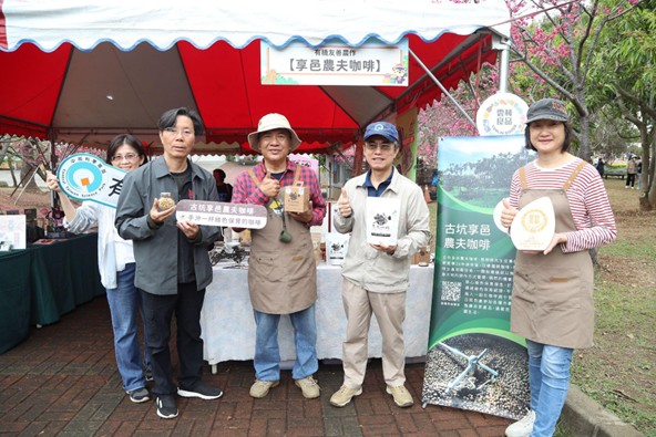 ▲中科管理局自115年2月27日至3月1日盛大舉辦「春遊中科、綠「藝」盎然櫻樂匯活動。許茂新局長(右2)於現場特別介紹光泰環能在永續攤位區,帶來歐洲生物炭驗證商品,讓民眾輕鬆體驗淨零綠生活。其中生物炭植感盆栽更是將中科園區內的腐植土、EBC驗證生物炭和有機沼渣進行混合,讓土壤充滿活力,永續加值。(圖/中科管理局提供)