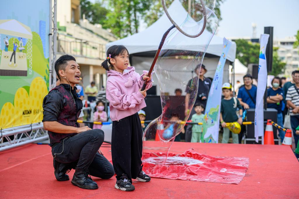 3、夢幻泡泡互動:4月5日下午15時於鯨魚廣場登場,現場將化身為充滿大小泡泡奇幻空間,孩子們穿梭其中、盡情互動,營造如童話般場景,一起留下難忘兒童節回憶。