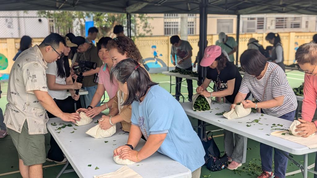 ▲115年「茶韻峨眉」湖畔春季茶會隆重登場,購買茶席套票遊客體驗現場揉茶。(圖/參山處提供)