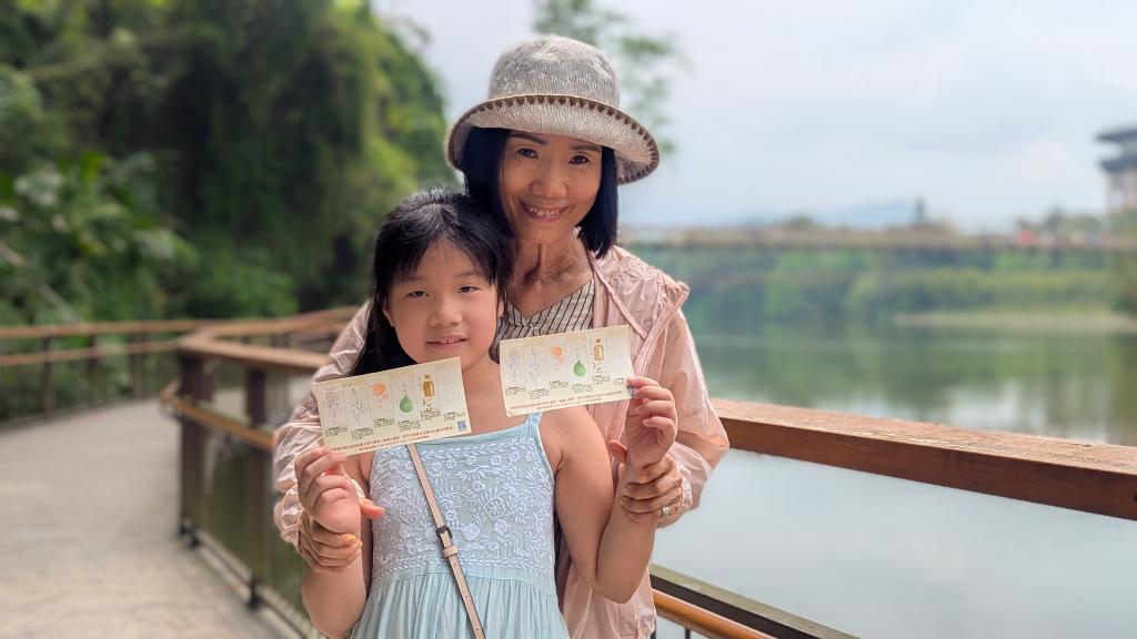 ▲115年「茶韻峨眉」湖畔春季茶會隆重登場,小遊客在峨眉環湖步道參加集章活動。(圖/參山處提供)
