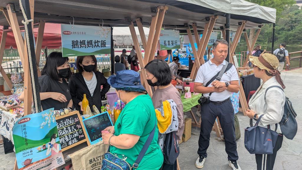 ▲115年「茶韻峨眉」湖畔春季茶會隆重登場,峨眉湖遊艇碼頭設20攤販售在地特色物產。(圖/參山處提供)
