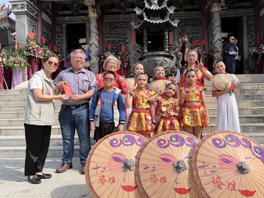 今年開幕儀式特別邀請仁德文賢國小特色民俗藝陣「十二婆姐團」演出;文賢國小為教育部國際教育種子學校,並榮獲國際教育特優學校評鑑;由學童飾演的小婆姐身段靈巧、神態生動,演繹傳統廟會喜慶氛圍,以童趣姿態詮釋傳統喜慶,吸睛又暖心,展現教育傳承文化美感。