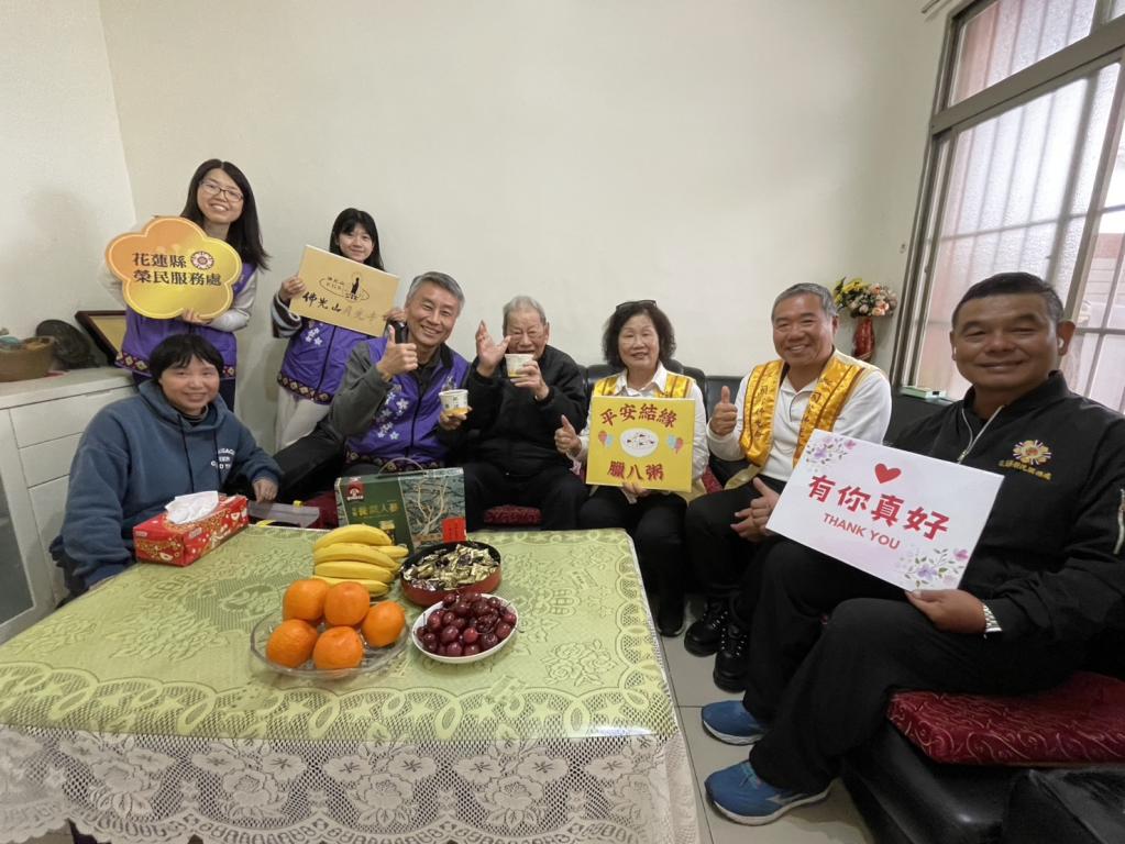 捐贈儀式結束後,徐寶靜副督導長、吉安鄉鄉民代表姜景文代表及蕭振嘉處長,一同親訪居住吉安鄉楊伯柏等百歲高齡榮民長輩,分享平安臘八粥,蕭振嘉處長親送營養品,現場氣氛溫馨,眾人一同陪伴長輩們聊天,叮嚀長輩們最近天氣較寒冷要記得多加衣物保暖。