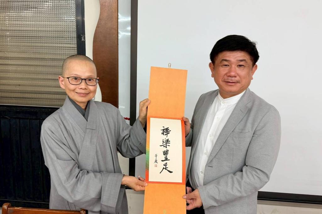 法鼓山蘭陽分院常實法師致詞以溫暖法語勉勵大眾:期許我們彼此都能成為「如意」的人,多想如意的事,多說好話。