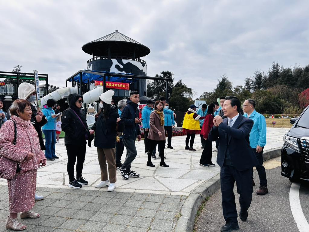 縣長陳福海走春拜年首站即從水試所浯島媽祖平安鹽祭開始,除祈求風調雨順、縣運昌隆外,也祈願鄉親福慧吉祥、闔家平安;畜試所是走訪第二站,熱情鄉親、親切笑容溫暖冰冷冬天,畜試所提供冰品及熱鮮乳做公益亦是吸引大批人潮,不畏寒風善心令人敬佩。