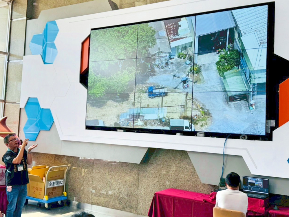 ▲新竹捐血中心供應課課長林志信講解無人機運送行經路線。(圖/新竹捐血中心提供)