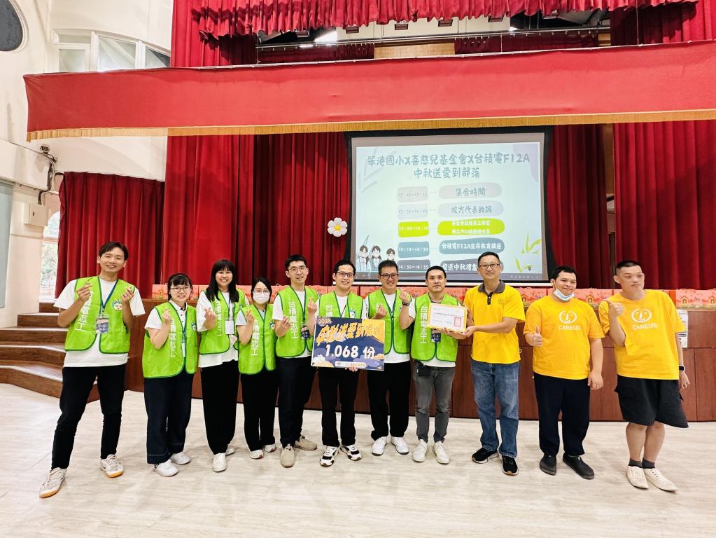 中秋佳節前夕,台積電F12A同仁在廠長帶領下,以實際行動傳遞溫暖與祝福,員工凝聚善的力量認捐1,068盒由喜憨兒庇護工場的中秋月餅禮盒,並帶著憨兒一同親送至桃園新屋笨港國小與永安國小,這份禮物不僅是佳節祝福,更是心智障礙者工作訓練的學習成果。