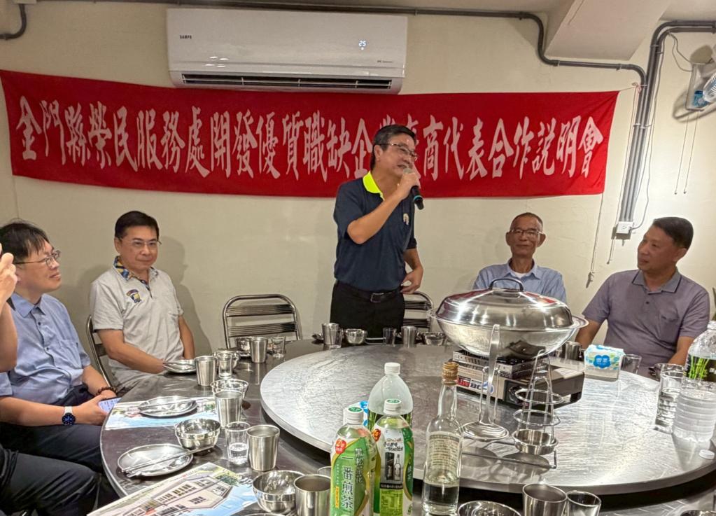 榮服處說明,本次說明會由金門縣榮服處劉信義處長主持,會中除向廠商宣導輔導會「民營機構團體及私立學校協助退除役官兵就業獎勵」及「促進退除役官兵穩定就業津貼發給辦法」等相關權益措施外,並邀請勞動部勞動力發展署北基宜花金馬分署金門就業中心宣導中高齡、高齡及婦女再就業等各項獎助措施,期望協助企業善用各項資源,提升人力運用效益,打造多元友善職場環境。