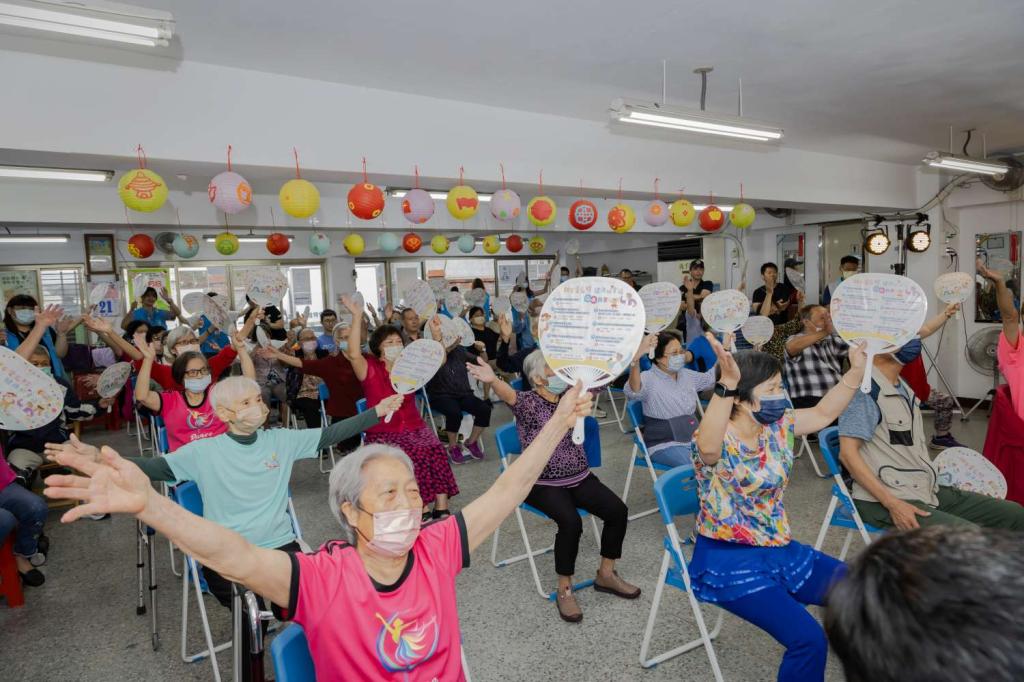 ▲新竹市「甜蜜愛長照,健康好幸福」長照巡迴宣導首場活動登場,長輩們在老師的帶領下跳暖身操,維持身體健康。(圖/竹市府提供)