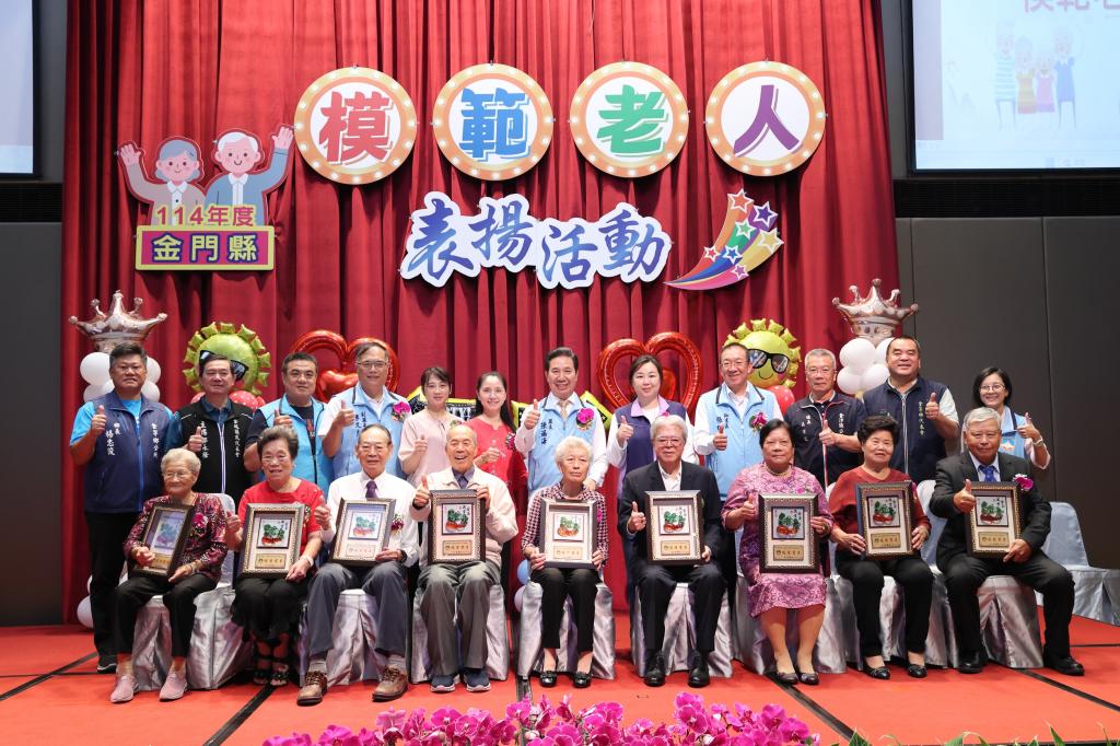 【勁報記者于郁金/金門報導】情暖金秋!為弘揚敬老尊賢傳統美德,金門縣政府於10月24日舉行「金門縣114年度模範老人表揚活動」,由縣長陳福海親自主持;典禮現場除縣長伉儷外,副縣長李文良伉儷、祕書長張瑞鑫伉儷,金城鎮長李誠智、金湖鎮長陳文顧、金寧鄉長楊忠俊、金沙鎮長吳有家、烈嶼鄉長洪若珊、金城鎮代表會主席郭永隆、金湖鎮代表會主席蔡乃靖、金寧鄉代表會主席黃文欣等,均到場共襄盛舉,場面隆重而溫馨。