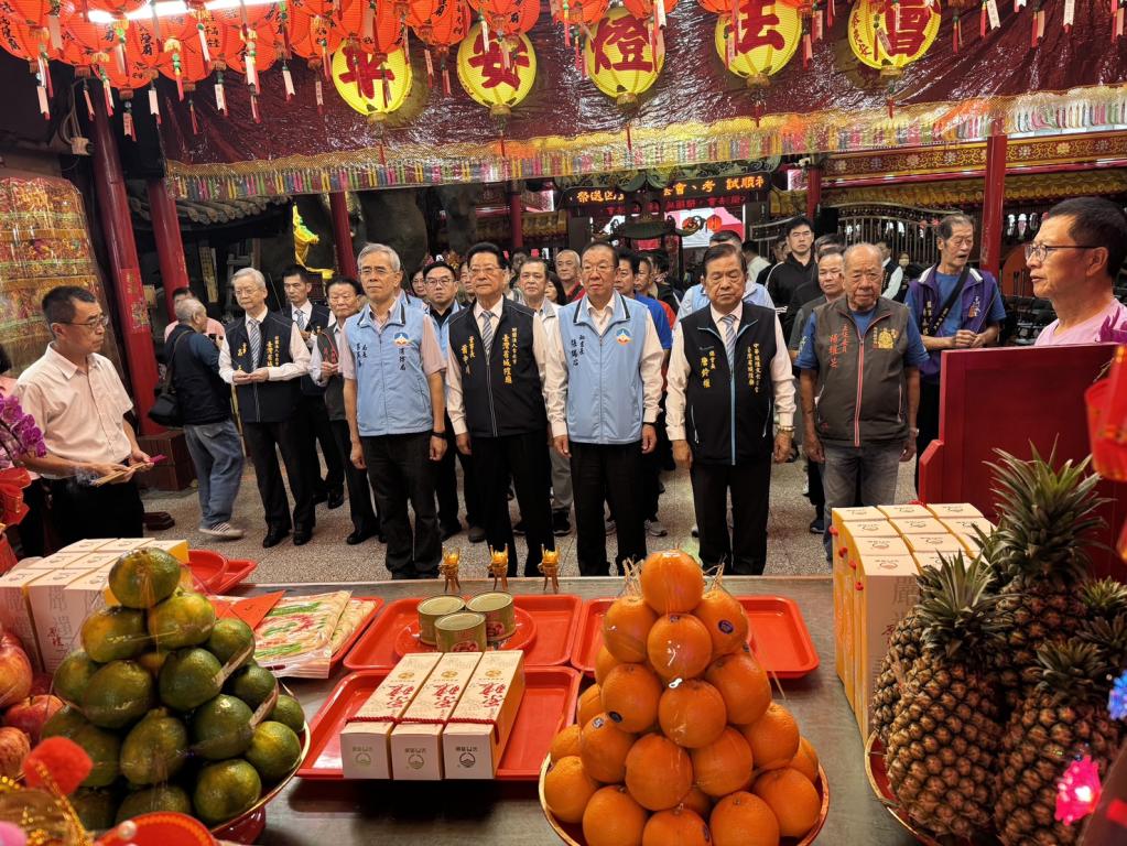 局長呂英華為感謝臺灣省城隍廟善行義舉,也為祈求城隍爺保佑地方風調雨順、國泰民安,率消防局主官管在祭典中,向神明上香、獻酒、獻花、獻金帛及獻爐敬金。