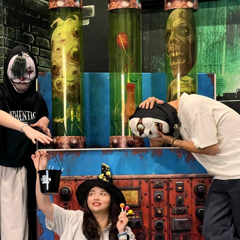 大手牽小手,體驗驚悚趣!萬聖節腳步將近,竹北遠百搶先在1樓西側電梯廳換上「恐怖實驗室」限定主題裝飾,濃厚的驚悚氛圍正式登場!泡著藥水的斷臂與人體組織、懸吊空中的巨大眼球、低沉詭譎的音效,以及綠光閃爍的燈影,營造出昏暗又神祕的場景,成為民眾拍照打卡的新熱點。活動從即日起至10月31日止,邀請大家揪好友一起來挑戰膽量、體驗萬聖節驚悚魅力。