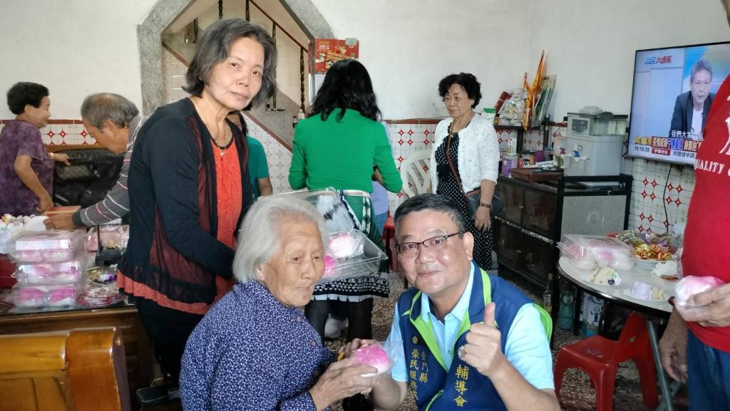參加本次慶生活動貴賓有行政院金馬聯合服務中心吳增允執行長、烈嶼鄉鄉民代表會吳福全副主席、上歧村洪天南村長;吳執行長致贈祝壽酒,劉處長帶領大家高唱生日歌、切壽糕、送壽桃,一起分享百歲人瑞喜悅與福氣,老人家心情愉悅、眉開眼笑,活動過程充滿溫馨和樂氣氛。