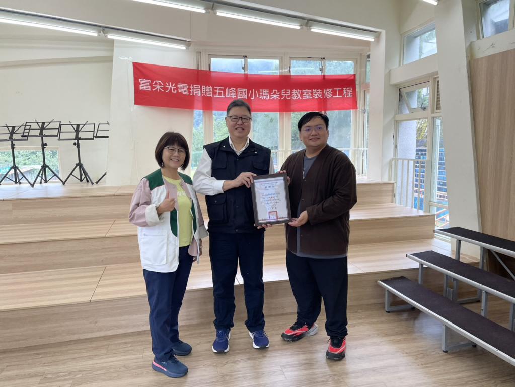 啟用儀式由富采人力資源中心段樹立資深處長、五峰國小羅志成主任與家扶中心張如萱主任共同主持,現場貴賓、師生與部落耆老齊聚,見證這座充滿文化與夢想的新學習空間誕生。啟用典禮上,五峰國小學生以傳統歌謠吟唱,向富采表達誠摯感謝。羅志成主任代表學校致贈感謝狀,感謝企業與社會各界的善心支持,讓表藝教室得以蛻變為兼具音樂教育與文化意涵的「部落音樂中心」。羅主任表示:「富采員工的善舉,讓孩子們有機會在更優質的環境中學習,也讓部落文化能以更有生命力的方式傳承下去。這不僅是一間教室,更是文化與夢想的搖籃。」
