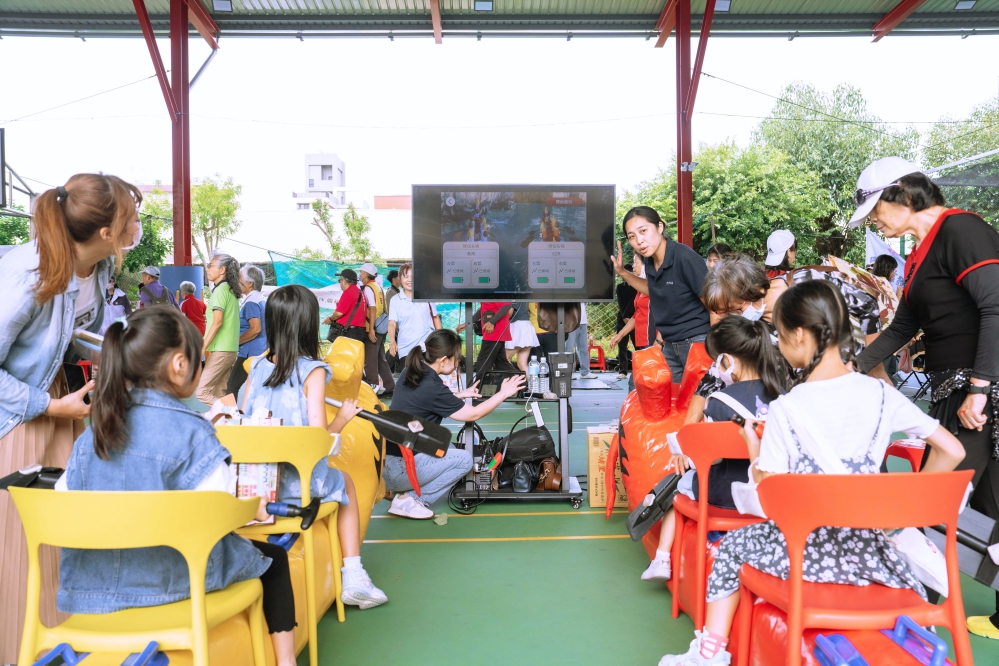 衛生局指出,活動中的「互動體驗區」吸引了不少市民的駐足,其中由國立陽明交通大學健康長壽與老化科學研究中心開發的「龍舟競賽」智慧運動設備,將體感科技結合AI技術;在陽明交大溫瓌岸教授帶領團隊成員於現場說明及引導下,參加龍舟競賽智慧運動體驗的民眾無不賣力划著道具槳,不但考驗團隊合作默契,還能一同享受運動樂趣,賽後大家大呼過癮,體感科技結合AI技術帶來的如真模擬情境,讓賽者感受到智慧運動帶來身心的愉悅感!