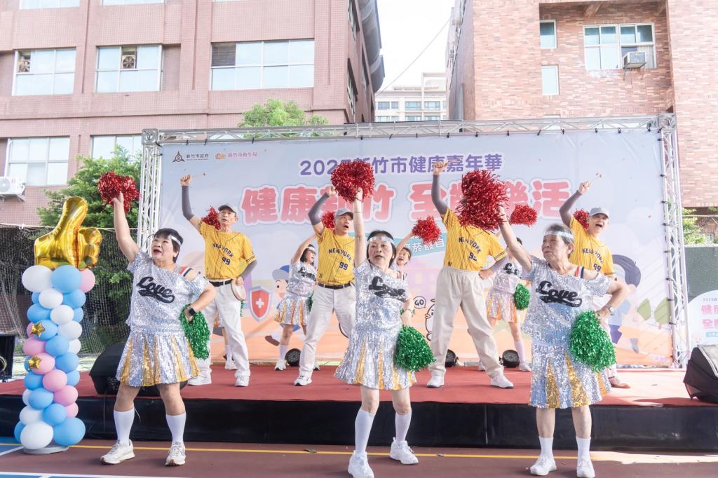 ▲竹市衛生局「大家醫起來.無菸最自在」健康嘉年華盛大登場,社區長輩們以精采有活力的舞蹈揭開活動序幕。