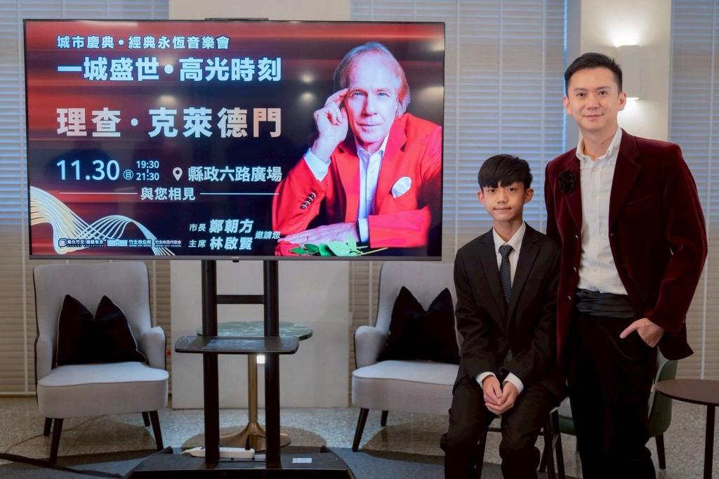▲竹北市長鄭朝方(右)宣布「世界上最成功的法國鋼琴家」理查.克萊德門(Richard Clayderman)即將登上竹北舞台。(圖/竹北市公所提供)