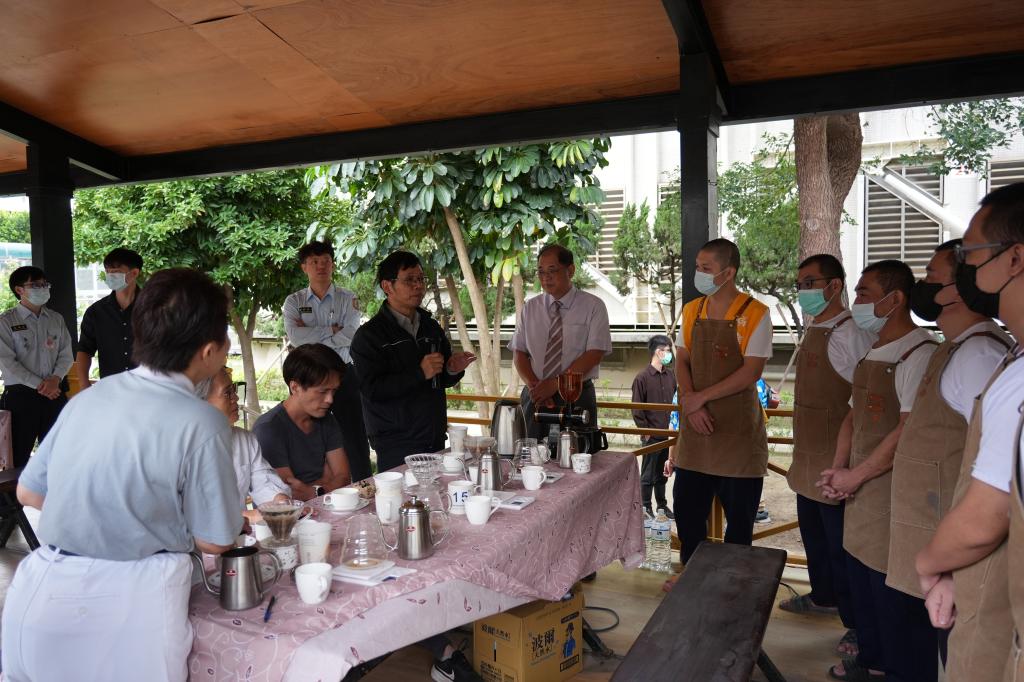▲新竹監獄第二期「手沖咖啡技能訓練班」結訓典禮,評審老師講評。(圖/新竹監獄提供)