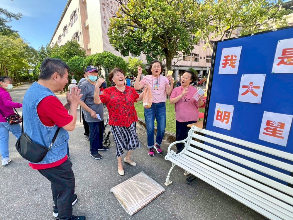 ▲銘傳大學梅花社校友擔任關主與八德榮家長輩一起玩闖關遊戲,現場氣氛洋洋溢著滿滿的笑聲與活力。(圖/八德榮家提供)