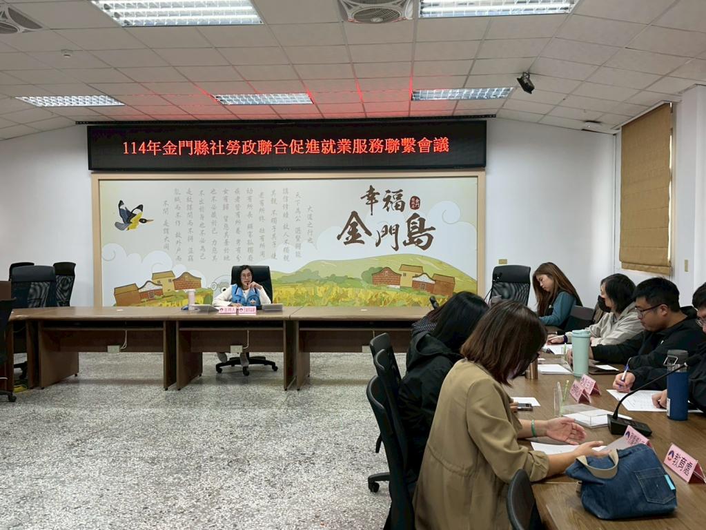 【勁報記者于郁金/金門報導】金門縣政府於11月20日舉辦114年社勞政聯合促進就業服務聯繫會議,由縣府社會處長王茲繐主持,並邀請跨網絡單位共同與會,包含:勞動部勞動力發展署北基宜花金馬分署金門就業中心、財團法人福建更生保護會、衛生局社區心理衛生中心、本縣教育處、本縣家庭暴力暨性侵害防治中心、本縣社會福利服務中心與各鄉鎮公所,期待促成跨網絡協同合作。