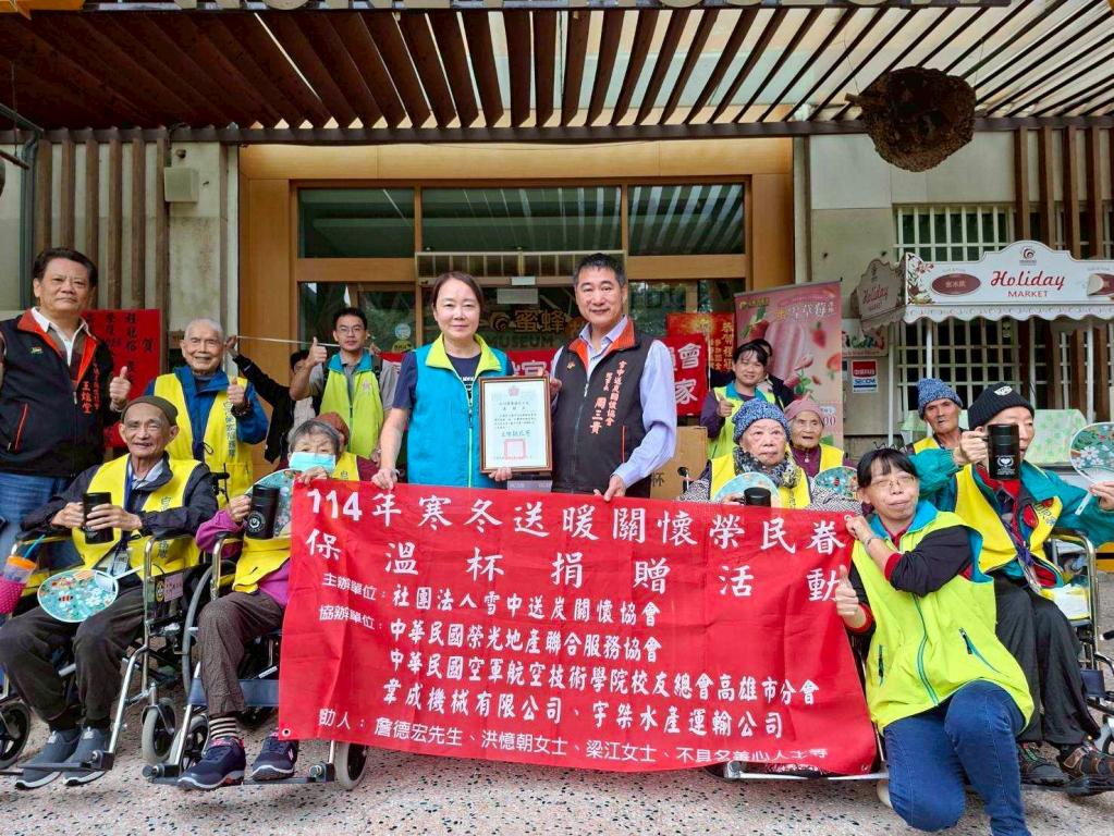 榮家說明,本次捐贈保溫杯適合住民日常生活使用,不管是外出活動或在房內休息時,都能方便地享用溫水或熱茶;在氣溫驟降天氣裡,喝上一杯溫暖熱茶,為身體帶來暖意,也為心靈增添溫度。