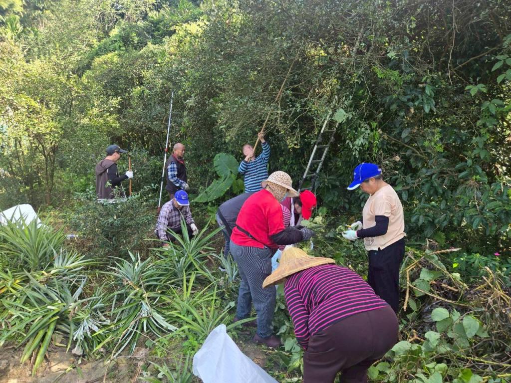 為免因「綠癌」持續擴散,藉由活動為在地防治工作推動起點,由新竹分署三峽工作站主任林純徵、安坑里里長李瑞娉共同率領工作站同仁與在地社區民眾及私有地地主翁東隆等約30餘人,藉由工作站同仁講解小花蔓澤蘭外形、特性,及觀察對原生植物體纏繞、覆蓋所造成的影響後,再分組透過動手除蔓過程來深刻瞭解外來入侵種對本土生態的破壞,11/30日共同合力剷除計面積約0.15公頃,總重量約120公斤,由工作站依規收購價金計600元,翁東隆先生全數轉贈給里辦公室作為社區綠美化基金,展現社區公益。