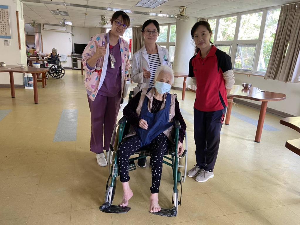 【勁報記者于郁金/嘉義報導】92歲榮民李奶奶因大腸癌末期導致腹脹、食慾不振與行動愈來愈吃力,頻繁往返醫院讓她疲憊不堪,為不捨奶奶因病奔波,經白河榮譽國民之家轉介至臺中榮民總醫院嘉義分院後,該院安寧居家團隊立即至機構提供居家安寧照護,中榮嘉義分院首次訪視由家醫部醫師洪恩琪為李奶奶進行完整評估、疼痛管理與生活作息衛教,在持續照護下,奶奶腹脹與疼痛逐漸緩解,進食與休息品質明顯改善,且不再因就醫奔波而感到疲累。