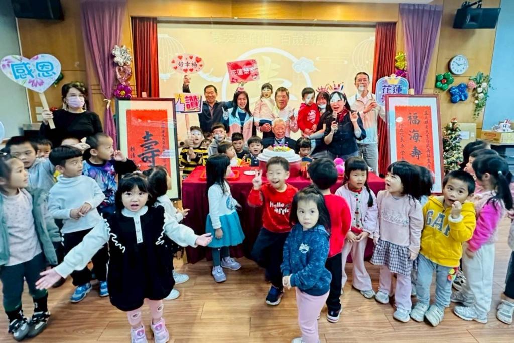 【勁報記者于郁金/花蓮報導】花蓮榮家4日為百歲榮民袁天雄伯伯舉行祝壽典禮,現場洋溢溫馨與歡笑;榮家幼兒園小朋友特別到場為爺爺獻上生日祝福,童聲合唱與可愛表演為典禮揭開最暖心序幕,袁伯伯滿心歡喜,不時露出燦爛笑容。