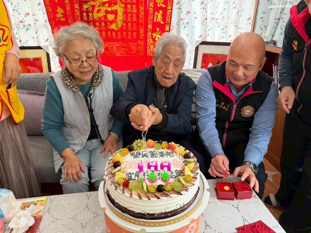 【勁報/宜蘭報導】宜蘭縣榮民服務處8日舉行一場溫馨慶生活動,為百歲榮民劉崇祐老先生慶祝其百年華誕,並向他致上崇高敬意和深深感謝;百歲榮民堅韌生命力與歷經歷史歲月,讓在場每一位參與者感動不已,並再度見證榮民對國家貢獻和無私奉獻精神。