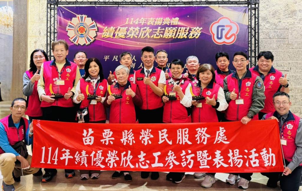 苗栗榮服處說明,該處榮獲今年度績優榮欣志願服務運用單位,同時榮欣志工6人分別獲輔導會表揚,包括績優服務組長湯德仁、績優榮欣新進志工吳光祐、績優榮欣志工覃美華、楊秀華、賴美雲、方五妹等,表彰該處用心安排志工訪視獨居長者、辦理義剪、物資發放等各項活動造福榮民眷,更設立臺中榮總就診專車服務,由志工隨車服務長輩上下車、協助門診及取藥,縮短就診時間,提升醫療品質,減輕醫療負擔。