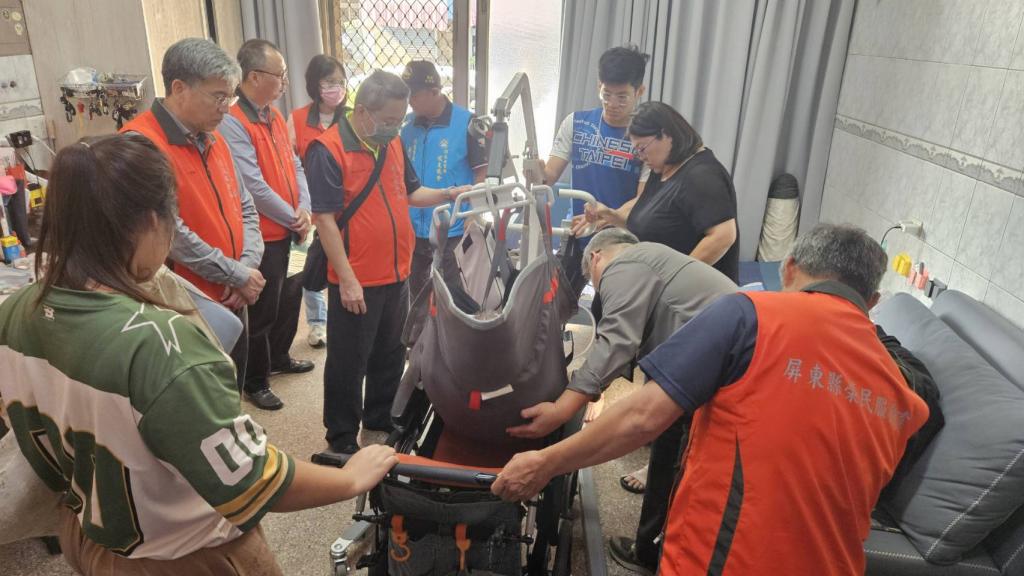 捐贈當日,榮服處偕同屏東榮總社工室主任王建業、個管師等服務團隊,教導家屬正確移位方式及照護技巧,讓榮民在家也能獲得持續且安全照護;士官校友會副理事長李光忠本於同袍之情,也積極參與捐贈活動,給予同袍打氣與精神鼓舞。