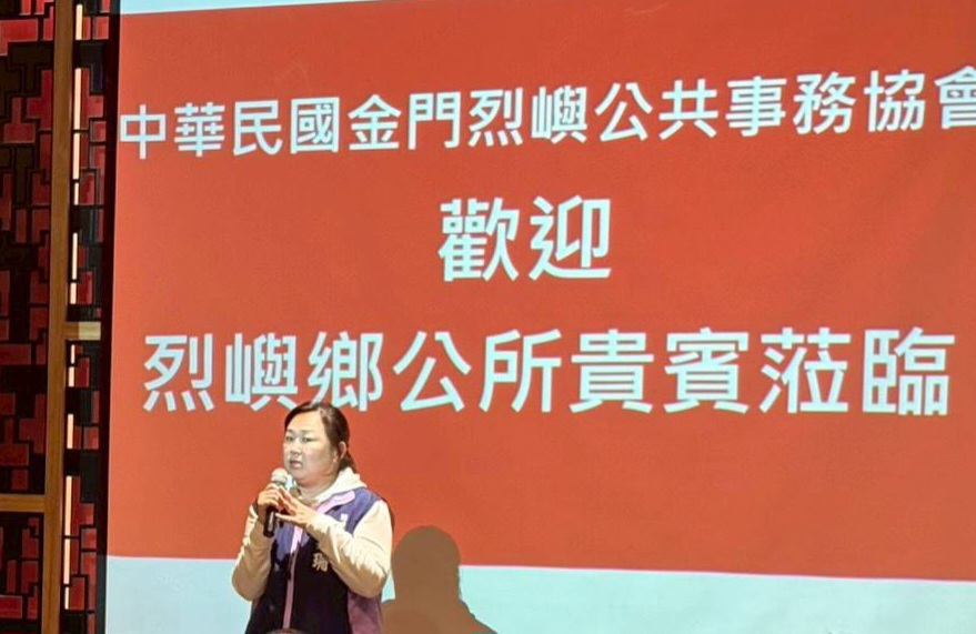 烈嶼鄉長洪若珊致詞表示,她特別感謝烈嶼協會在她鄉長任內大力支持,尤其每年烈嶼協會組團返鄉參加芋頭節活動,開放100個名額報名都秒殺額滿,並常常邀請她參加該會所辦各項活動,她都能排除萬難赴台參加。