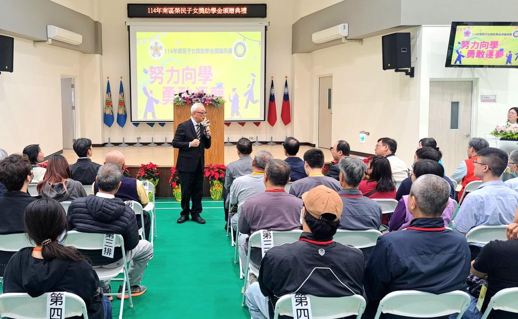 【勁報記者于郁金/臺南報導】輔導會12日於臺南榮譽國民之家舉行「財團法人榮民榮眷基金會」大學以上榮民子女就學補助暨獎學金南區頒獎典禮;典禮由陳進廣副主任委員親自主持,臺南市榮服處處長王國能亦率領葉豐豪等19位獲獎學生與家長蒞臨參與;在這場溫暖而隆重場合,不僅凝聚社會各界善心人士深厚祝福,也承載著榮民長輩殷切期盼後輩勤學向上沉甸心意。