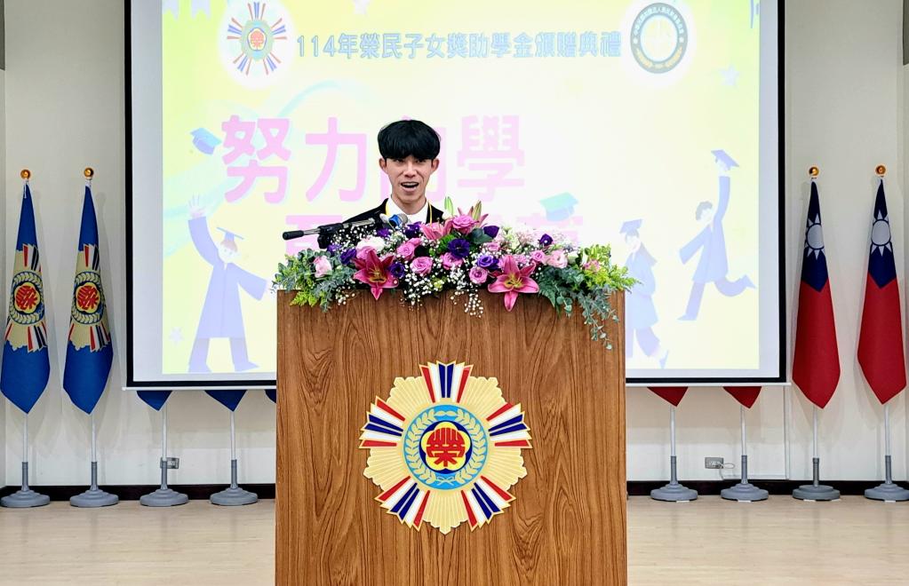 學生代表葉豐豪致謝表示,將以勤懇踏實態度回應社會期待,無論未來站上何種崗位,都會秉持感恩、回饋與服務信念,將榮民精神化為向上力量,持續傳遞這份跨世代大愛。