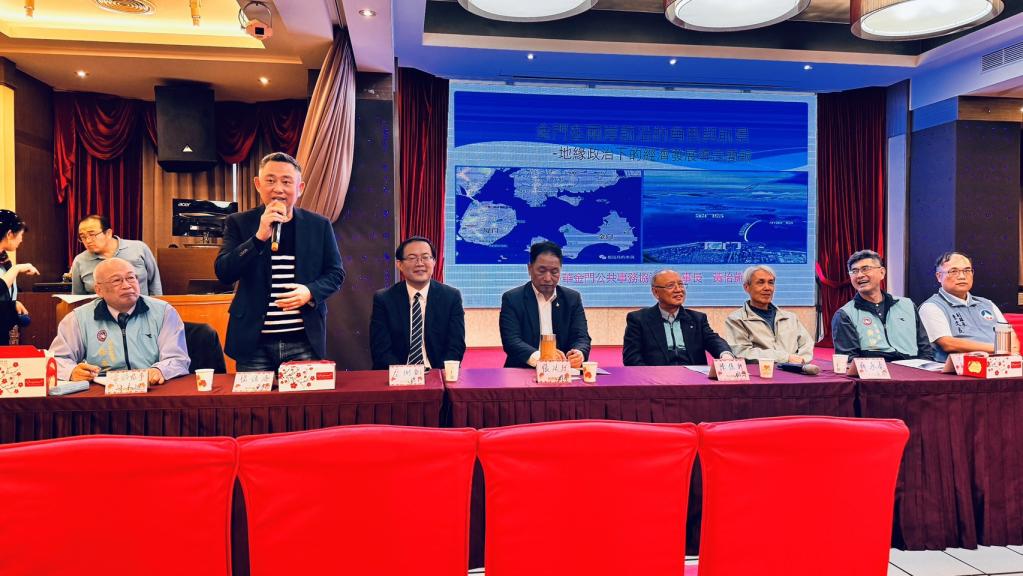 「金門地緣政治與經貿發展」論壇中,理事長黃怡凱首先以金門在兩岸前沿角色與前景,及地緣政治下經濟發展作引言。