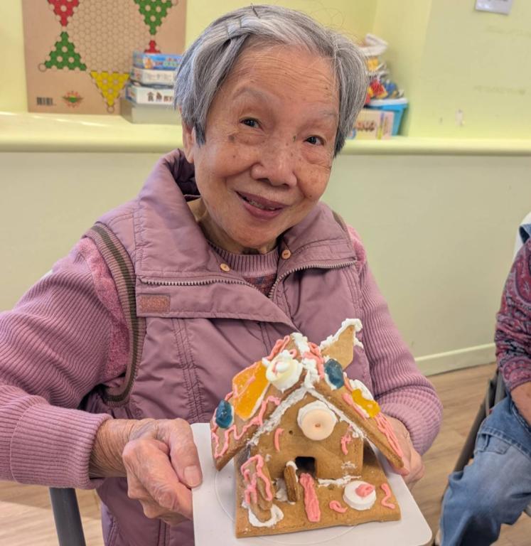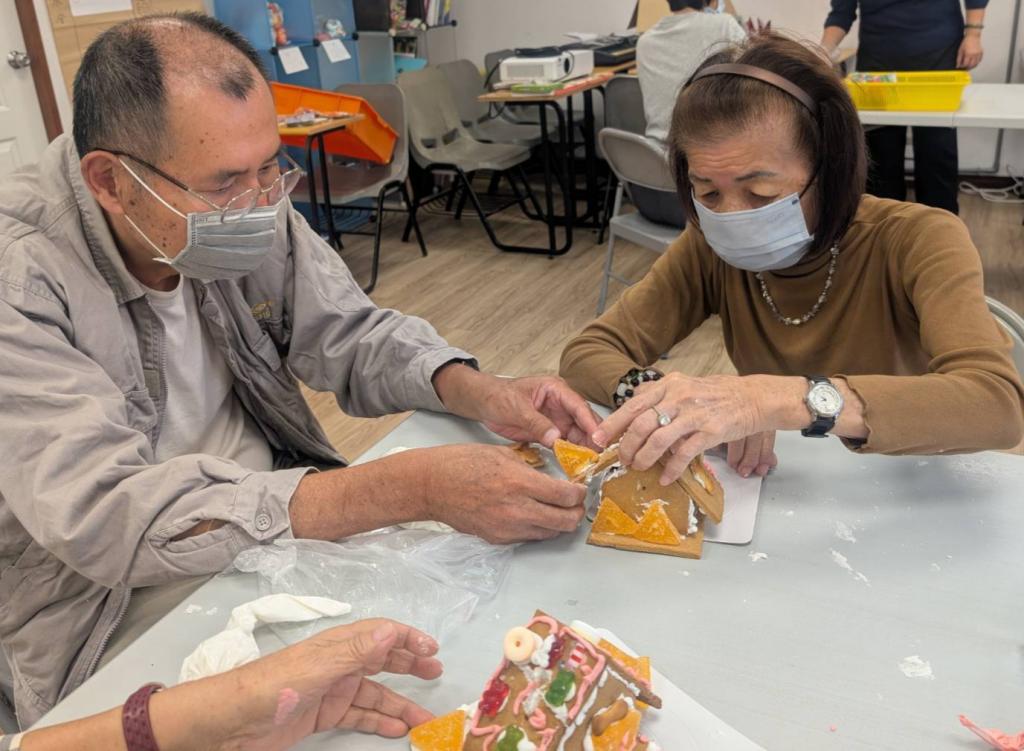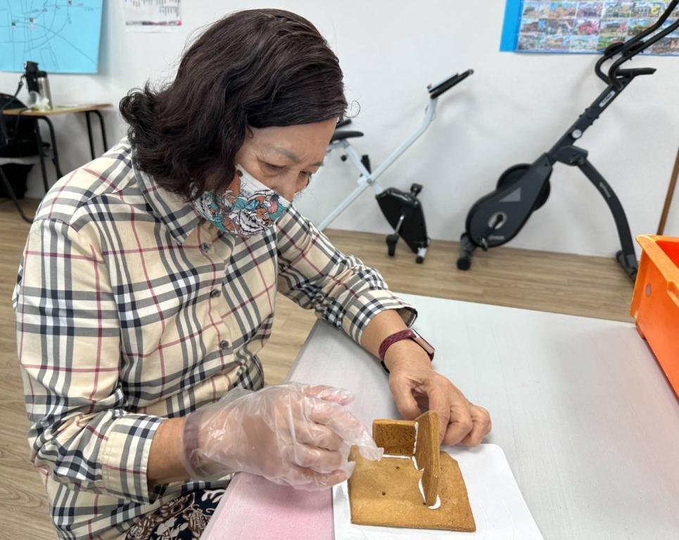 活動現場洋溢著薑餅香氣,住民老人家在工作人員引導下,專心地為薑餅塗抹糖霜、果醬、擺放裝飾,動作雖然緩慢,卻十分投入;看著完成作品,不少長輩露出開心笑容,並主動與身旁夥伴分享成果,現場氣氛溫馨熱絡。
