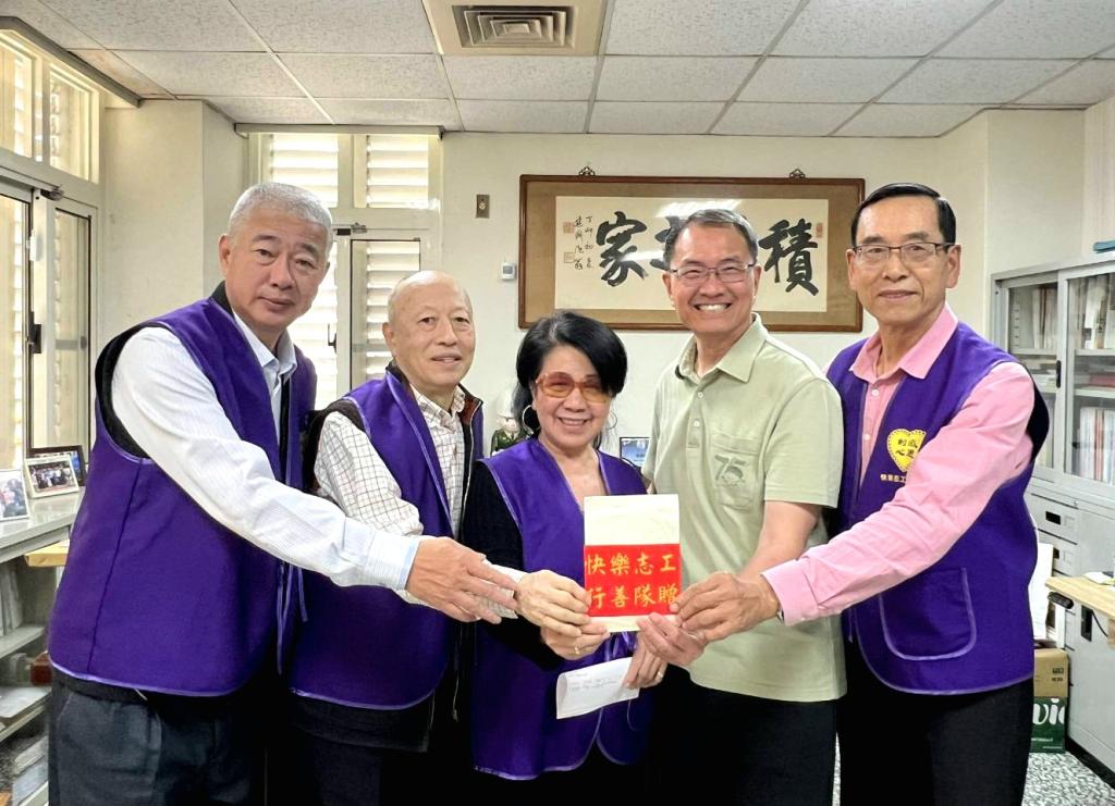 快樂志工行善隊李淑睿、吳文虎、楊克脩、鄭允全來到雲林家扶表示:從媒體歲末園遊會報導,看到從海南島遠嫁來台的江海英,15年來歷經先生罹患食道癌,後又移成淋巴癌末期及肝硬化亡故,再加上經濟上負債累累,看到雲林家扶社工支持陪伴與協助,海英媽媽學習居家照服員工作,處理債務照顧幼子長大,勇敢承擔考驗迎向嶄新未來。