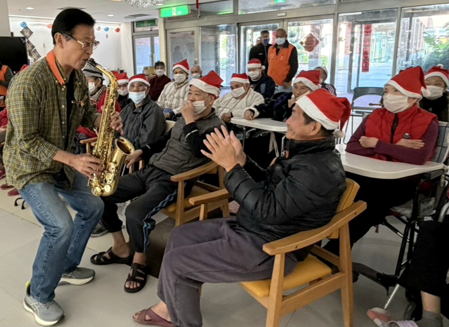 活動當日,榮民張志範投入深情演奏,一首首耳熟能詳旋律緩緩流瀉,不僅喚起長輩們美好回憶,更有長者隨著音樂節奏輕輕擺動身軀、自然起舞,臉上綻放燦爛笑容,掌聲與歡笑聲此起彼落,場面溫馨動人;榮欣志工亦全程細心陪伴、貼心照料,讓長輩能安心參與活動,充分展現志工服務熱忱與溫度。