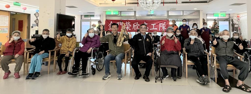 【勁報記者于郁金/金門報導】為促進榮民眷長輩身心健康,金門縣榮民服務處於17日結合松柏園及大同之家,共同舉辦「美聲饗宴」公益活動;活動由輔導會前處長張志範主動聯繫金門縣榮服處發起,並特地蒞臨金門在劉信義處長陪同下,前往兩處安養機構以薩克斯風演奏悠揚樂聲,將溫暖與關懷傳遞給在場每位長輩。