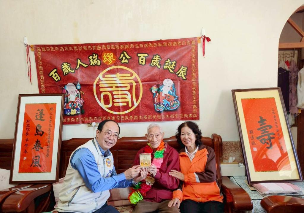 榮服處說指出,民國63年,繆爺爺隨部隊移防返臺並在臺南那拔林服役;翌年在長官夫人介紹下與如今夫人締結良緣,定居原臺南縣南化鄉;民國66年退伍後,他投入農務與畜牧,以勤勞與樸實支撐家庭歲月;夫妻育有1子1女,皆已成家立業,家庭和睦、日子踏實;如今百歲高齡,兒孫滿堂,繆爺爺人生亦成為動盪年代縮影,更是一段值得後世銘記生命敘事。
