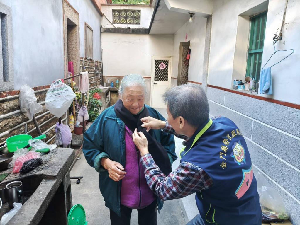 【勁報記者于郁金/金門報導】為落實國軍退除役官兵輔導委員會關懷照顧榮民眷宗旨,金門縣榮民服務處於近期寒流來襲之際,積極推動「寒冬送暖」關懷行動,運用輔導會寒冬送暖增撥經費,結合民間公益團體資源,主動關懷轄區雙老獨居、經濟弱勢及因公傷殘等較具風險榮民遺眷,透過到府訪視與物資致贈,將溫暖與關懷實際送到榮民眷家中。