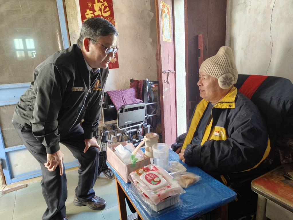 服務處各級人員分赴各鄉鎮進行慰問關懷,劉信義處長於訪視過程中,親切叮囑長輩注意保暖多喝溫熱開水,並關心他們是否能正常使用熱水洗澡與食用熱食。