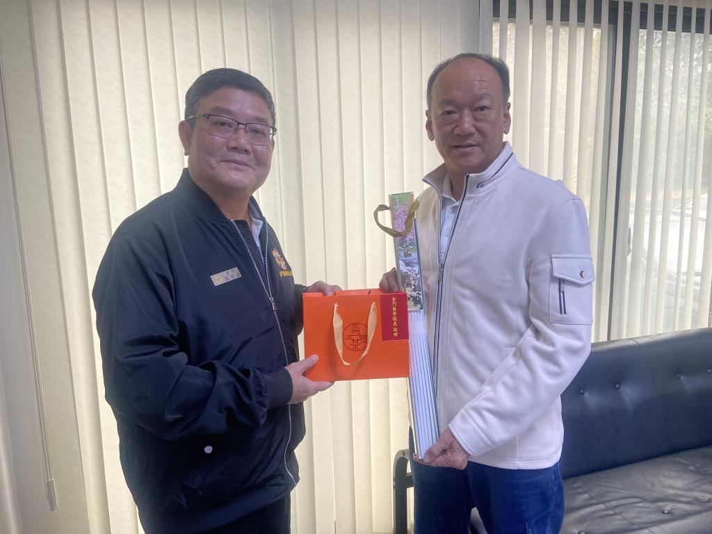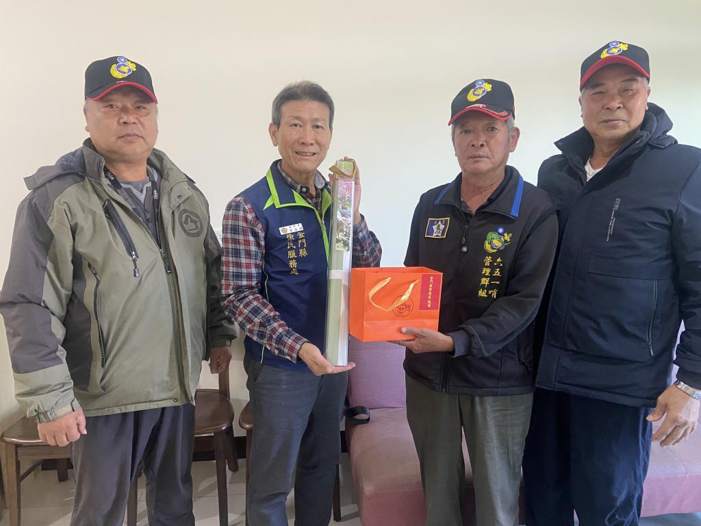 【勁報記者于郁金/金門報導】為感謝地區退伍軍人社團長期協助配合政令宣導,共同投入照顧榮民眷及各項公益服務,金門縣榮民服務處於歲末年終之際,特別安排由處長、副處長、總幹事在承辦人陪同下,分別前往各退伍軍人社團登門拜會,並致贈茶葉禮盒及輔導會農場精美月曆,表達誠摯感謝之意;拜會過程中,透過面對面交流互動,傾聽社團建言、交換服務意見,進一步增進彼此情誼,期能持續整合地區退伍軍人社團資源,凝聚向心力量,共同發揮穩定社會正向能量。